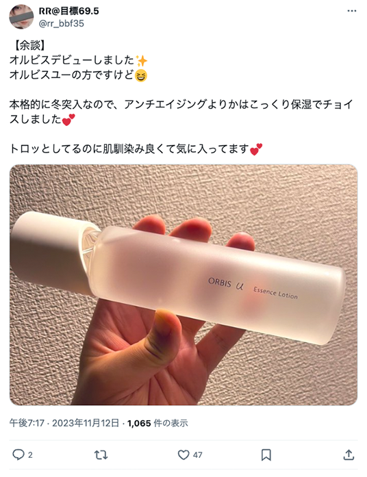 【 オルビス公式オンラインショップ 】アンバーはこちら 【 オルビス公式オンラインショップ 】特別セットをチェック!はこちら SNSや口コミコスメアワードで話題の商品セレクトしました!セレクトページはこちらから