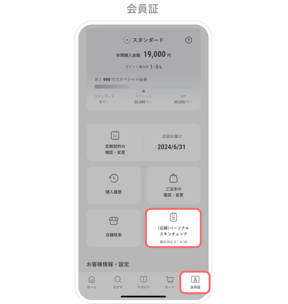 画面下の「会員証」