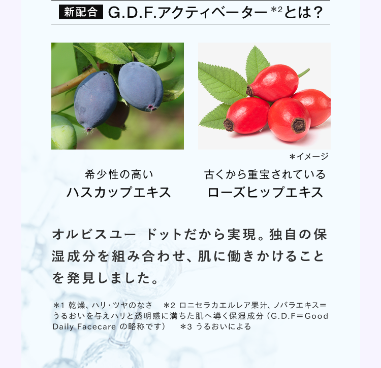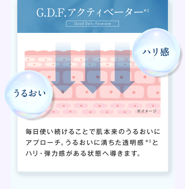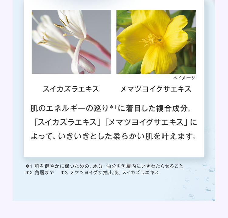 POINT1 うるおいを満たす POINT2 ゆらぎくい肌に導く POINT3 うるおい巡らせる